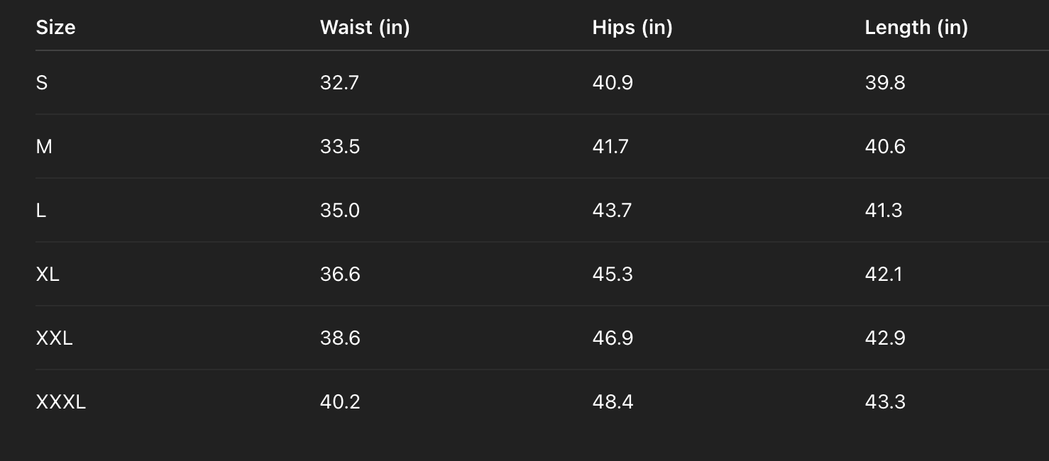 The pants are available in sizes S, M, L, XL, XXL, and XXXL, ensuring a fit for every body type.